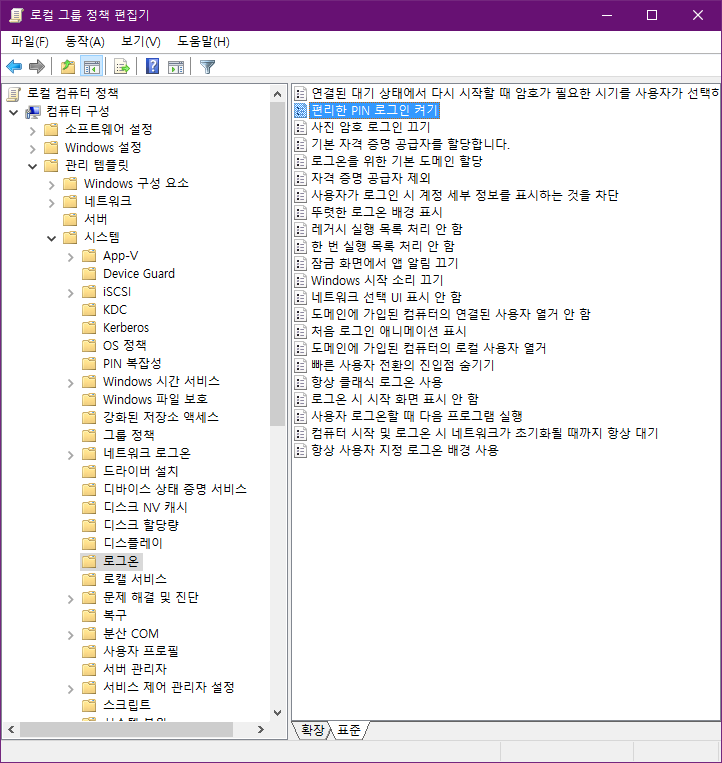 컴퓨터 구성 > 관리 템플릿 > 시스템 > 로그온