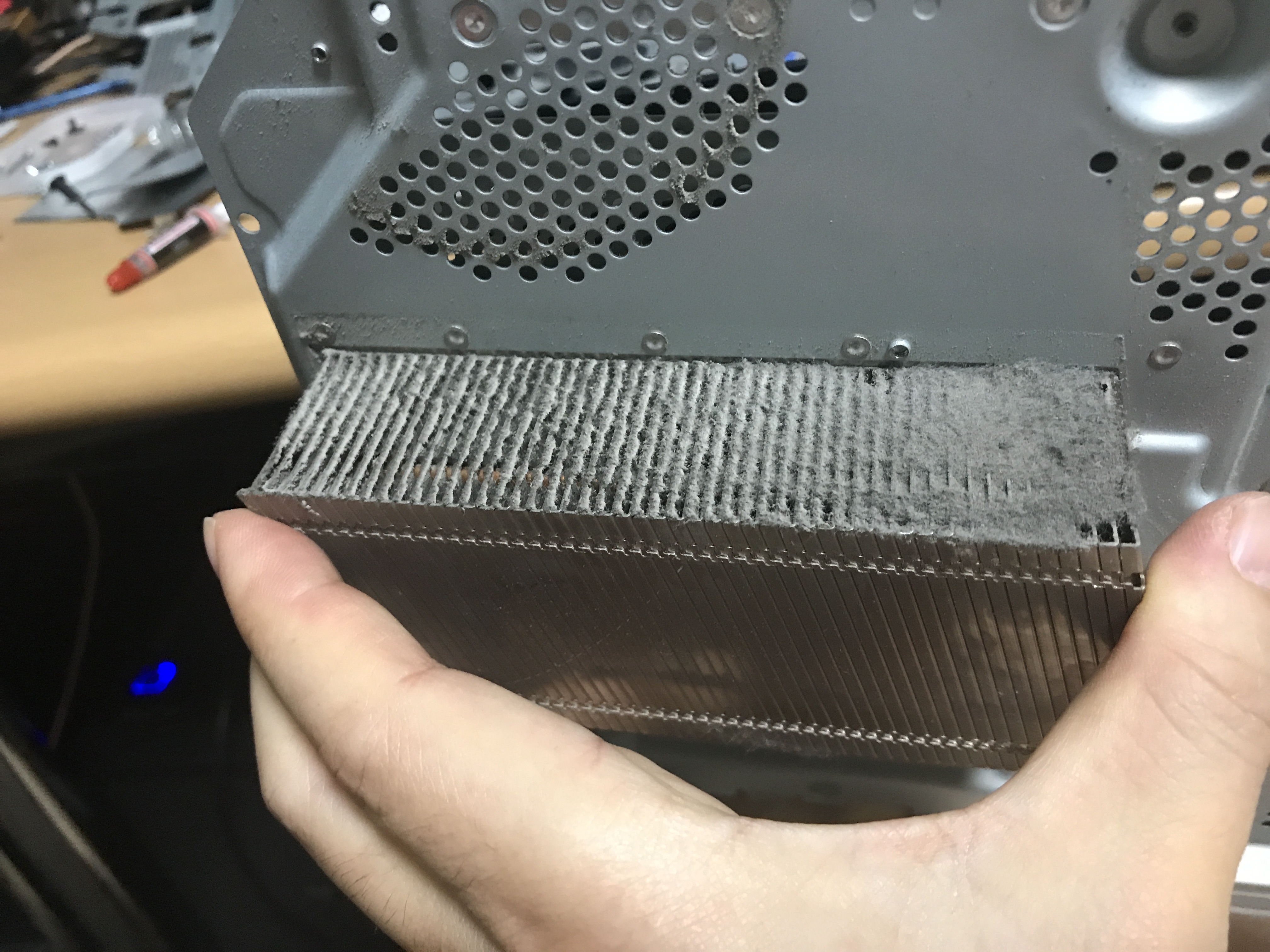 겉은 깨끗해도 히트블럭에 먼지가 가득하다. 이러니 시끄럽지.