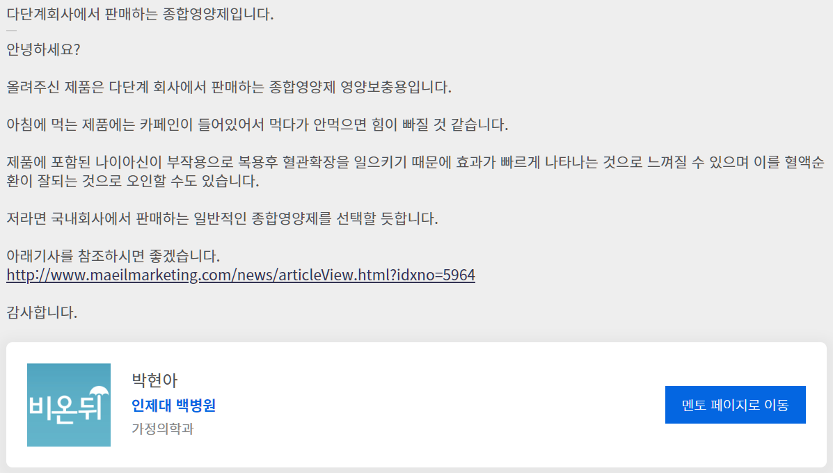 안녕하세요~ 저는 병원에서 근무중인 물리치료사입니다.최근 제 암환자분을 치료하다가 제가 피곤해 보이신다면서 권해주신 독일비타민제를 추천받고 약 한달정도 복용하게 되었습니다. 신기