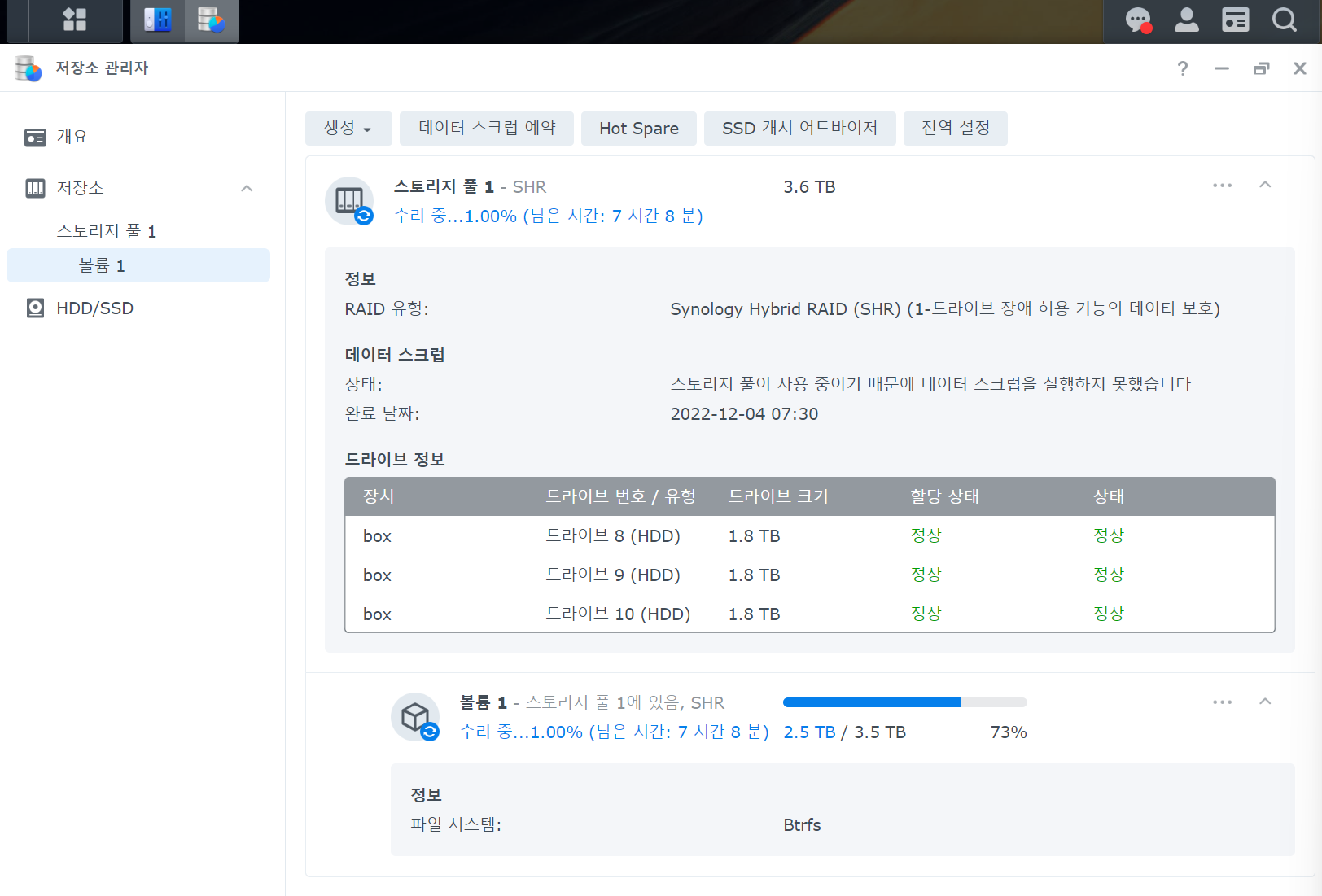가상드라이브 떼고, 중고로 산 진짜 HDD 붙이고 복구 중.
